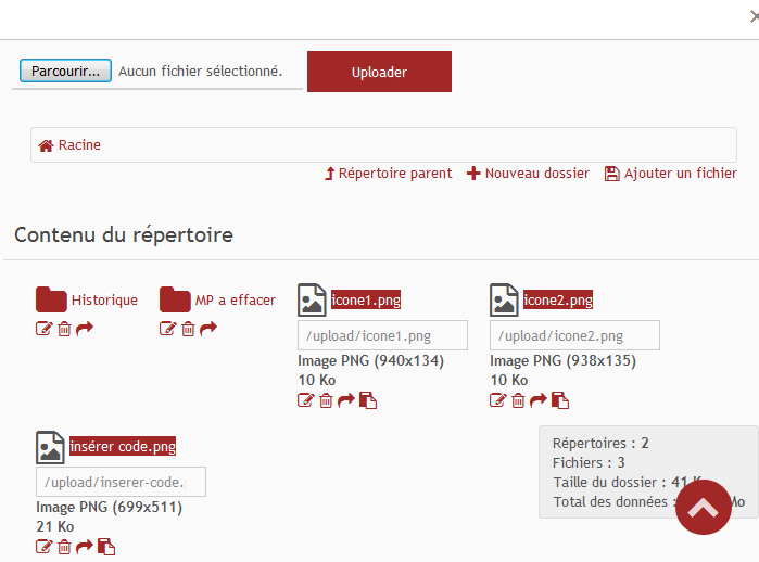 Si vous voulez tester une modification du délai d'affichage en rouge du dernier fichier uploadé, c'est ici: