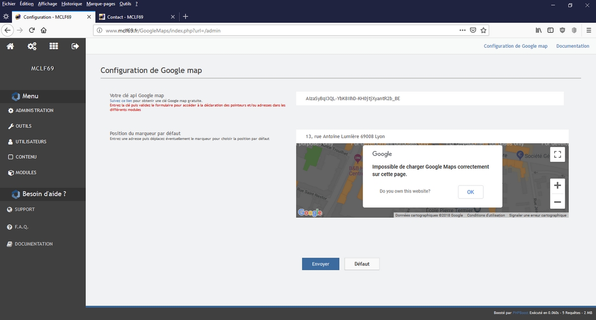 sa me met Impossible de charger Google Maps correctement sur cette page.